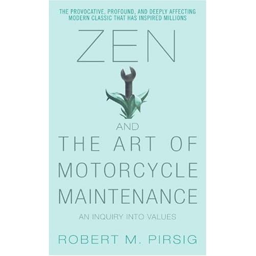 Correction: The book to the left of Pirsig's on the shelf is The First Henry Ford -- not John Ford. At least on the level of title John Ford's The Quiet Man would link up vaguely, very vaguely, to the usual public perception of Zen.